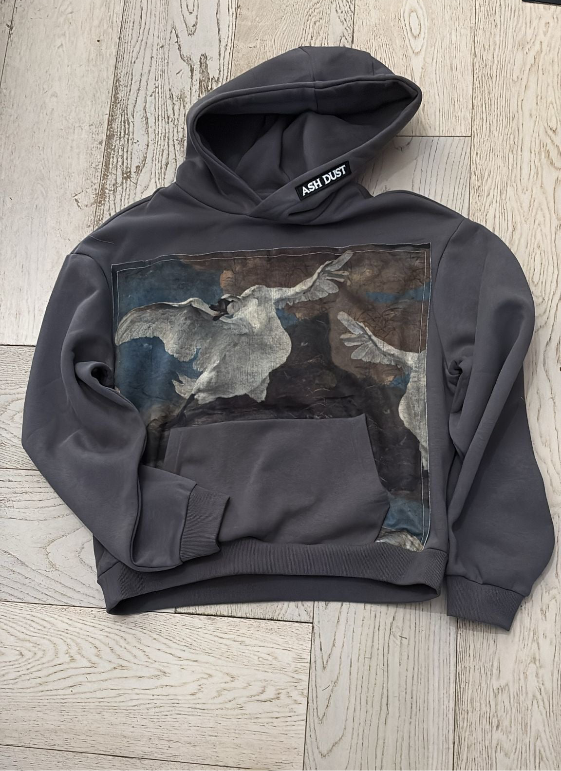 Felpa Crop Grigia con Quadro Cigno Olandese Spettacolare
